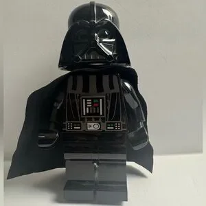 Light up the dark side with this fun LEGO Darth Vader flashlight! Features a large LEGO minifigure design with light-up feet, just press the chest to turn on the lights. Perfect for fans of LEGO and Star Wars, or as a unique collectible.