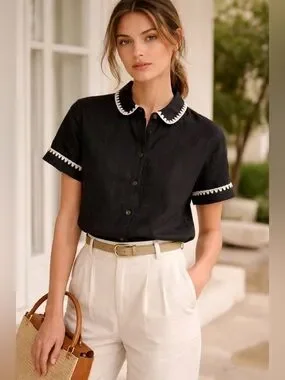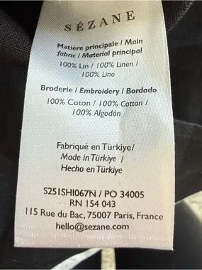 Elevate your wardrobe with this chic and breathable short-sleeve blouse from the coveted French brand Sézane. Crafted from 100% linen in a classic black hue, this top is perfect for warm weather and versatile styling.