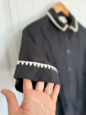Sézane Black Linen Crochet Trim Button Up Blouse Top Size 36 US 4