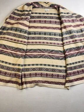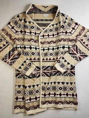 Lucky Brand Aztec Knit Shawl Collar Open Cardigan Sweater Medium M Cotton Blend