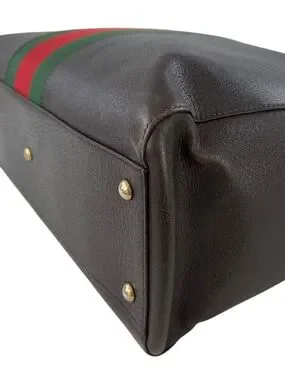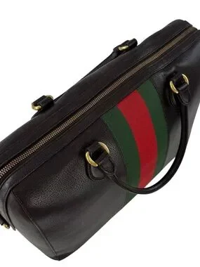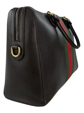 -Authentic Gucci Calfskin Leather Medium Web Stripe Satchel Bag
