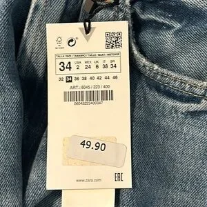 NWT Women’s Zara High Rise Wide Leg Denim Jeans Size 34 US (2) Excellent New With Tags Condition