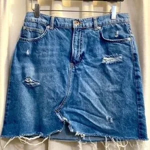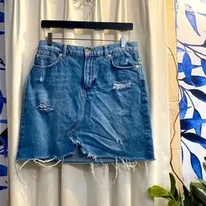 We The Free-Free People Distressed Denim Jean Skirt-Raw Edge-Light Wash-Size 28