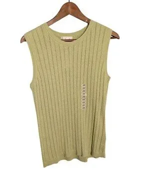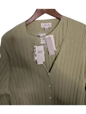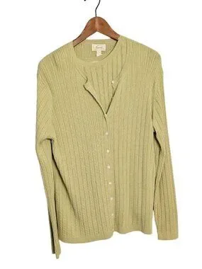 Foxcroft Women Sage Green Supima Cotton 2 Piece Cardigan Shell Set Size L Ribbed