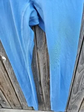 Vibrant blue Gymshark leggings with high waist. Smooth, stretchy performance fabric. Subtle Gymshark logo on hip. Fitted silhouette for workouts or everyday wear.