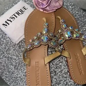 NWT Beautiful jeweled leather sandals from the brand Mystique. This is a discontinued style that is very rare!