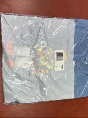Polo by Ralph Lauren short sleeve crewneck. Light blue base with multi-color graphic on chest. Soft cotton knit. Classic casual style.