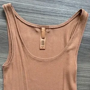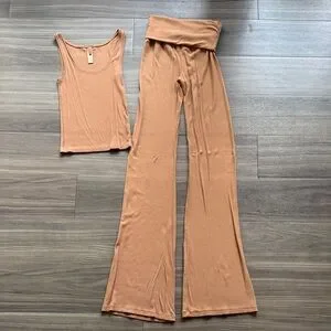 SKIMS Soft Lounge Rib Tank & Foldover Flare Pants Set Camel Tan XS/S