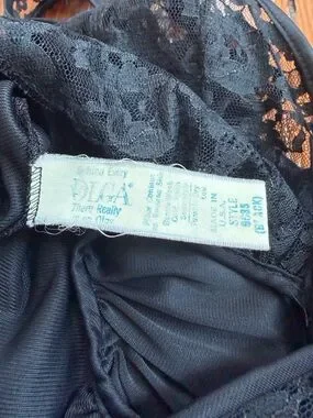 Vintage 70s Olga style 9635 keyhole sleeveless maxi length nightgown black