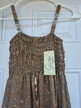 Beautiful and flowy brown paisley boho hippie midi dress made from vintage recycled saris.