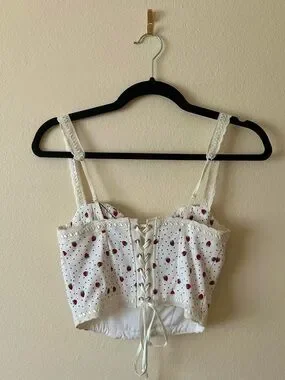 Garage White Strawberry Print Cupped Bustier (Brand new with tags)