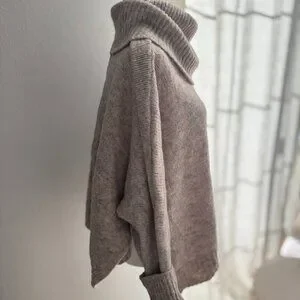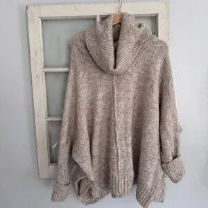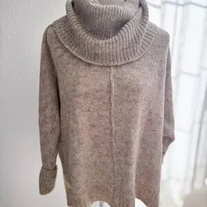 KAISLEY Scandi Neutral Heathered Cowl Turtleneck Boho Oversized Sweater Sz S