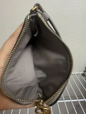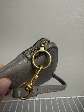 Tory Burch Pebbled Leather Wristlet in Taupe Gray