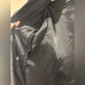 Light blemishes and scratches consistent with age. Two rips in the lining on one side near armpit seam, easy to patch (see last photo). Metal tag plate is detached on one side - another easy fix. Small bit of blue acrylic paint near hem. Priced accordingly. Otherwise in lovely condition.