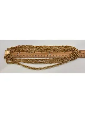 Vintage Gold Tone Multi 4 Strand Chain Necklace Heavy Layered Statement
