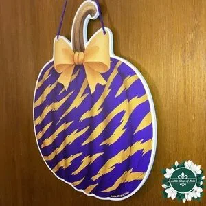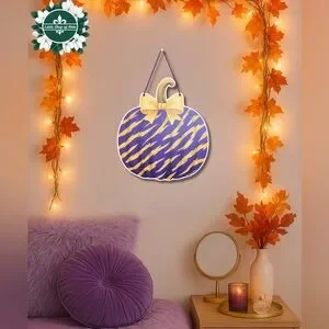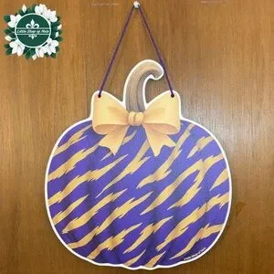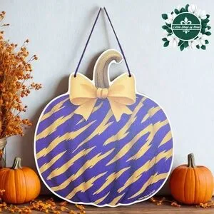 Purple Gold Tiger Stripes Pumpkin Louisiana Wall Art Decor Fall Door Hanger Sign