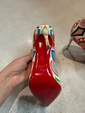 Christian Louboutin Hot Chick 100 Patent Tivoli Platine Gold Red Heel Pump