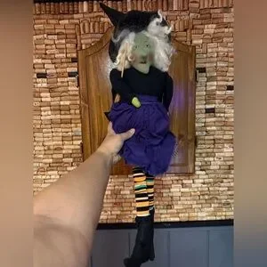 Vintage homemade Halloween fabric witch sitting doll decor