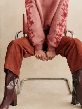 SÉZANE Candace Embroidered Floral Mohair Jumper Sweater in Rosewood Sz Small