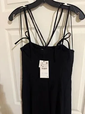 Zara Black Strappy Midi Dress with Double Spaghetti Straps