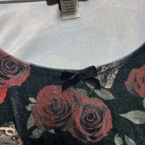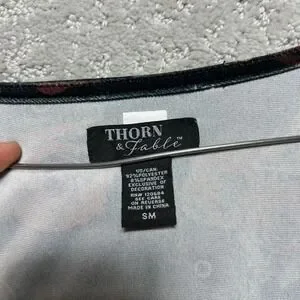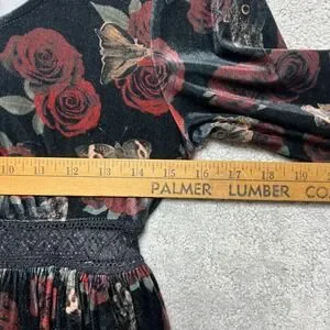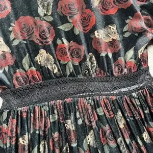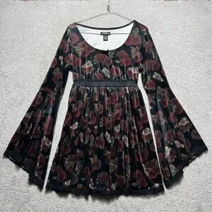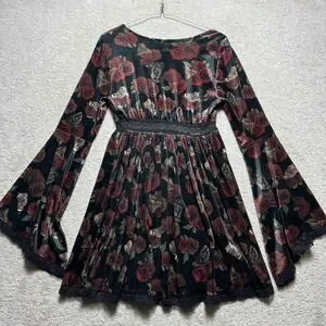 Thorn & Fable Dress Womens SM Velvet Bell Sleeve Mini Dress Rose Butterfly Print