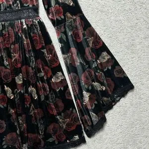Keywords: Goth, Whimsigoth, Grunge, Fairycore, Romantic Goth, Dark Floral, Velvet, Bell Sleeve, Coquette, Witchy, Victorian, Boho, Renaissance, Emo, Alt Fashion