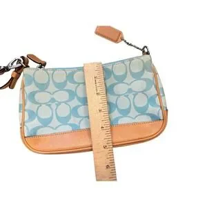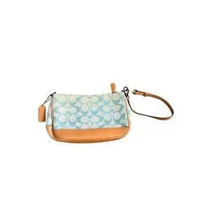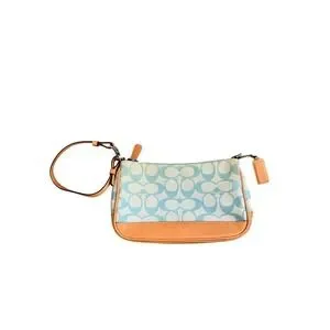 Coach Wristlet Bag Womens Small Blue Tan Signature C Monogram
