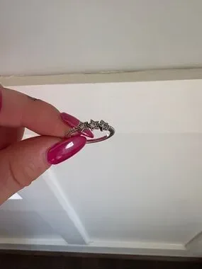 Elegant Pandora ring featuring three star motifs set with sparkling stones. Slim sterling band offers subtle shine. Versatile piece for everyday or special occasions.