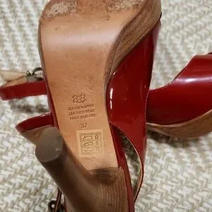 ALDO Y2K Red Real Patent Leather Platform Heels 37 Peeptoe Retro