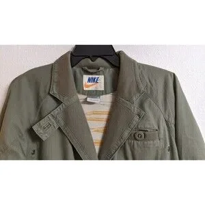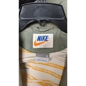 Women's NIKE Sportswear Jacket Terry Lined w/ Metal Sneaker Rainbow Charm in a Small. Features Rib Knit Details, a Media Cord Slot, Chest and Hand Pockets. The Bust is 40" Around and Length is 23". In Very Good Condition.