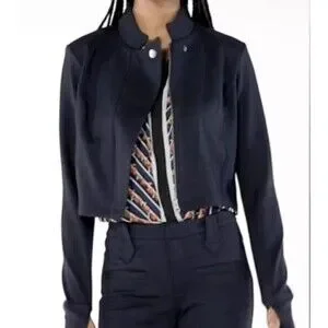 NEW~Women's Cabi # 6259 ADMIRAL JACKET Navy Blue Ponte Knit Cropped Zip Front XS