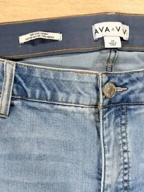 Gently Used in excellent condition Ava and Viv Jeans. Light wash Mid rise Skinny in size 20. Elastic in waist band. 62% Cotton, 23% Recycled Polyester, 12% Rayon, 5% Spandex.