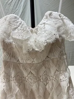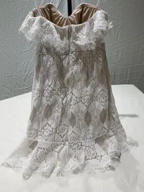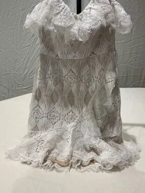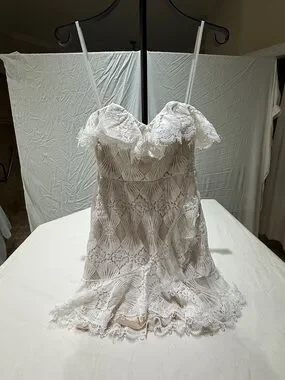 Selfie Leslie White Lace Slip Dress with Scalloped Trim