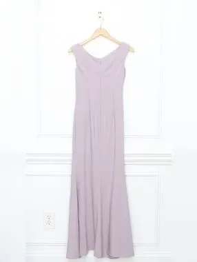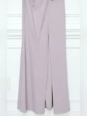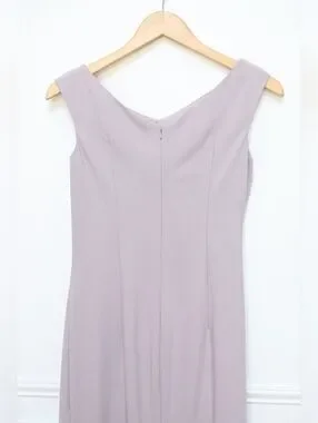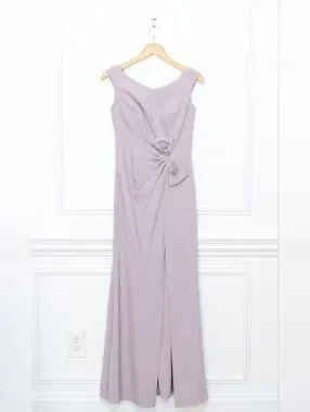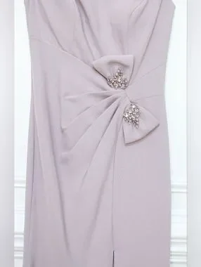 Gia Franco Embellished Bow Bateau Trumpet Dress with Slit in Mauve Purple. Very good preowned condition, some wear at under arm, see last photo. Size 4. Original MSRP $710