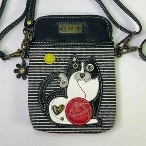 This adorable Chala crossbody bag features a charming cat design with playful detailing like a ball of yarn and cute heart accents. It’s perfect for casual outings, holding your essentials in style.