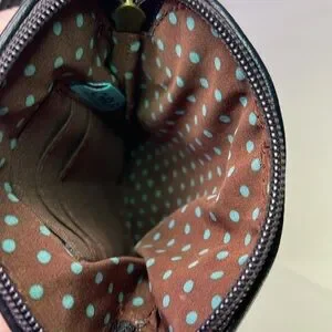 • Zip closure with polka dot interior lining