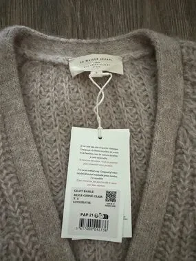 Sezane Bastille V-Neck Cardigan Sweater - Beige Small