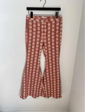 We The Free People Jeans Women’s 29 Float On Super Flare Orange Hibiscus Floral
