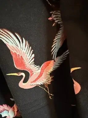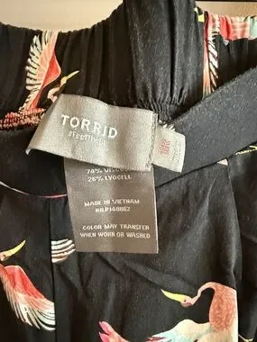 torrid Black Wide-Leg Pants with Pink Crane Print