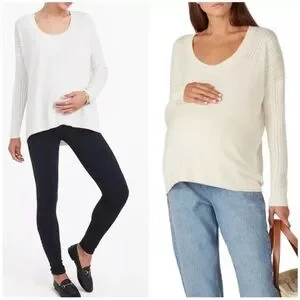 Hatch Scoop Neck Maternity Sweater in White/Cream