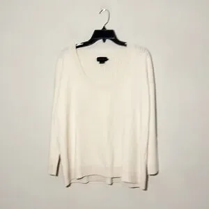 Soft scoop neck sweater by Hatch. Ribbed sleeves for subtle texture. Relaxed, drapey fit. Lightweight knit ideal for layering. Versatile neutral for everyday wear.