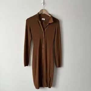 Aritzia Wilfred Cove Long Sleeve Knit Ribbed Dress Brown Size Medium