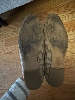 Coach Beige/Tan Signature Jacquard Slip-On Mules with Gold Hardware