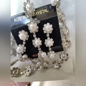 NWT Elegant Faux Pearl and Austrian Crystal Jewelry Set