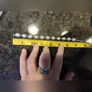 Bracelet seems to be about 7 inches, necklace is 14-15 inches, earrings about 1.5 inches.