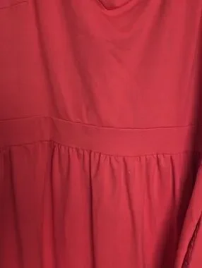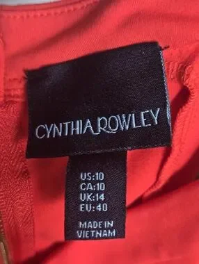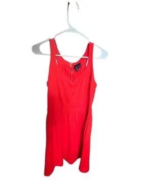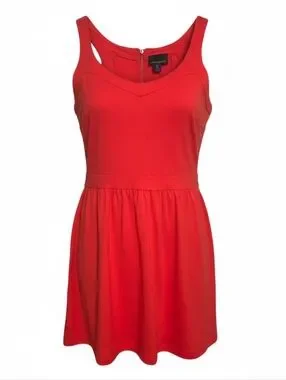 Classic sleeveless fit-and-flare dress in vibrant red. Features a flattering scoop neckline and defined waist for a feminine silhouette. Smooth knit fabric offers comfortable stretch and easy movement. Versatile style for day or evening wear. Size 10 Cynthia Rowley dress with pockets