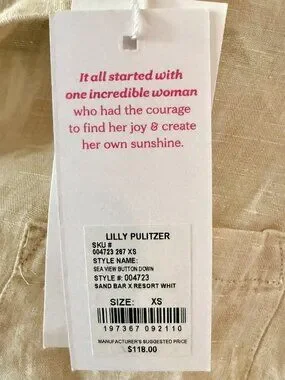 NWT! Lilly Pulitzer Sea View Button Down, Sand Bar X Resort White, Size XS