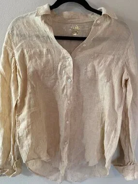 Breezy and exceptionally versatile, our Sea View Linen Button Down Top is an essential addition to your wardrobe. Thanks to its soft washed linen, this long-sleeve top is the ultimate warm weather solution. Wear it with jeans for a classic look, pair it with your favorite shorts for resort-ready style, or toss it over your swimsuit for an effortless cover-up. Made from natural European-grown fibers, this style will get softer and more luxurious with every wash and wear.