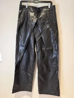 Uoozee Chic Black Faux Leather Wide Leg Trousers - High Waisted Size Large