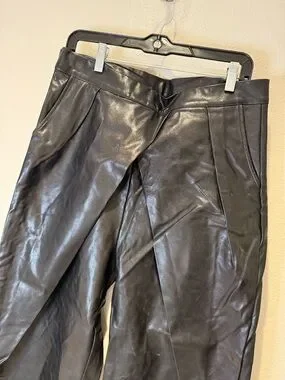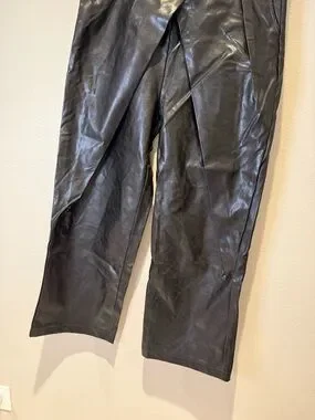 Make a statement in these stunning faux leather pants! Featuring a trendy wide-leg silhouette and a sleek crossover waist detail that is incredibly flattering. A must-have for your "night out" wardrobe or a polished office look.